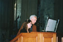 [Le travail se poursuit le lendemain:] Utiliser une quinte dans une registration de solo, ce n'est pas très adéquat: éventuellement une tierce chanterait mieux. La manière dont vous avez joué le récitatif central donne trop l'impression d'un arrêt dans le temps. Je disais hier que l'oeuvre doit être dessinée d'une seule courbe. Vous suscitez l'idée d'un encadrement vertical, alors qu'il faudrait la penser horizontalement.